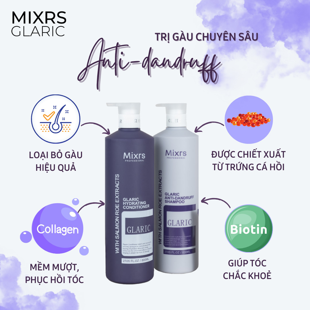 Bộ đôi gội xả Mixrs Glaric Anti – Dandruff không chỉ giúp tái tạo mái tóc mà còn cung cấp độ ẩm, nuôi dưỡng và làm trẻ hoá những mái tóc đã bị hư tổn.